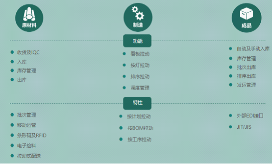 靈活多樣的物料拉動管理,支持排序、備料、手工拉動、Andon等多種配送方式 ;
